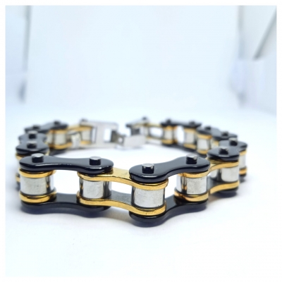 Pulsera acero inox. diseño cadena tricolor. Anchura eslabón 1cm. Se envía con caja y bolsa de regalo.