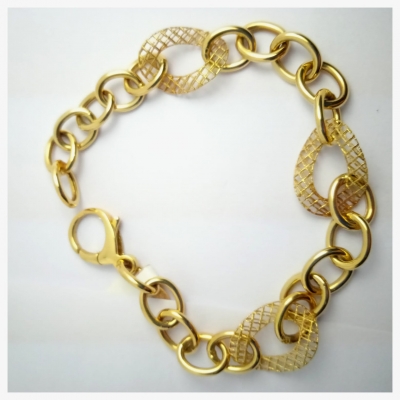 Pulseras oro amarillo 18k de eslabones grandes intercalados .Cierre de un gran mosquetón. Presentamos la joya en caja y bolsa de regalo.