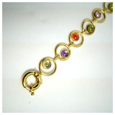 Pulsera oro amarillo 18k con circonitas de color , su cierre es marinero y grande. Se envía con caja y bolsa de regalo.
