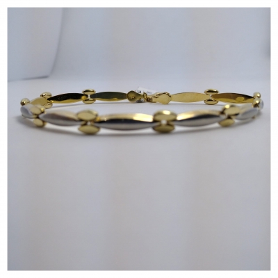 Pulsera bicolor oro amarillo y blanco entercalando los colores para un diseño único. Un clásico que nunca pasa de moda. Se envía caja y bolsa de regalo