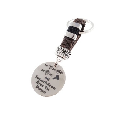 Llavero personalizado SUPERHÉROE, en acero y cuero. Se envía con caja y bolsa de regalo