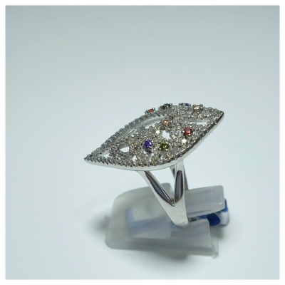 Anillo plata de ley 925 con forma de lagrima y circonitas de colores. Un anillo espectacular