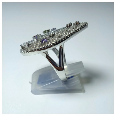 Anillo plata de ley 925 con forma de lagrima y circonitas de colores.