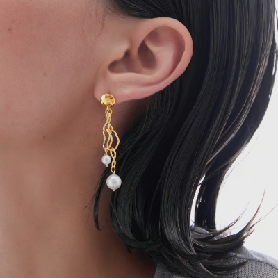 Pendientes largos de Plata de Ley bañados en Oro de 18kt en forma de perla, perfectos para fiestas, bodas o eventos especiales de la colección Connect