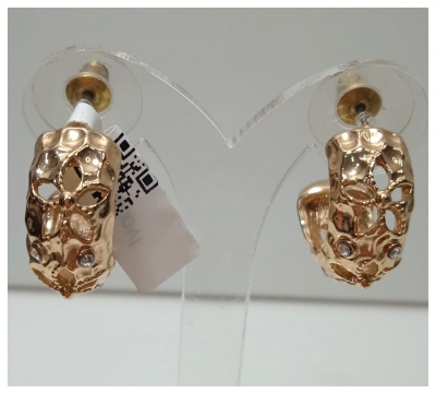 Pendientes Ivoire, criollas en doradas, con un diseño de flor con circonitas y cierre de presión.