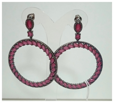 Aros con piedra rosa pulido , montado sobre una base de acero en negro brillo. Su cierre es de presión. Se envia con caja y bolsa de regalo.