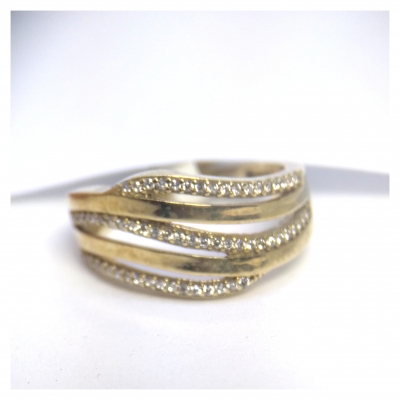 Anillo oro amarillo 9k con circonitas blancas. Presentamos la joya en caja y bolsa de regalo