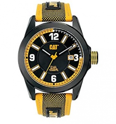 Amarillo y negro calendario a las 3, caja pavonada negra
