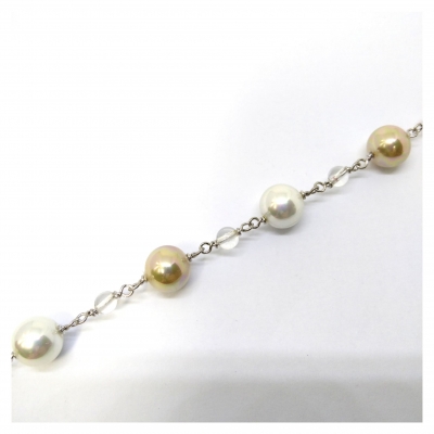 pulsera perlas Mallorca ren dos tonalidades y bolitastransparentes unidas por hilos de plata. Cierre mosquetón