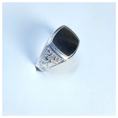 Anillo sello plata de ley 925 con grabados laterales. (se puede grabar el sello). Se envía con caja y bolsa de regalo