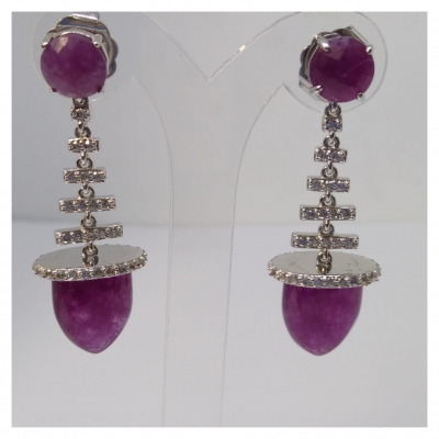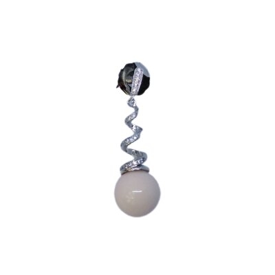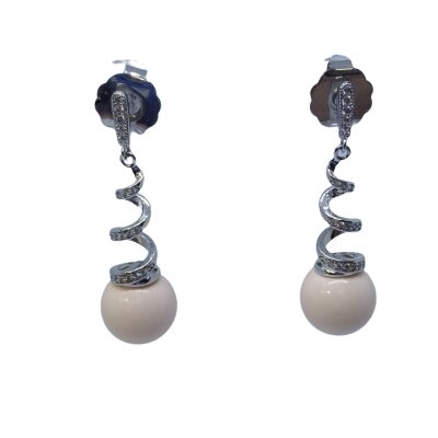 Pendientes largos en forma espiral de circonitas con perla rosa. Cierre presión. Un diseño de Garcia de Diego . Únicos