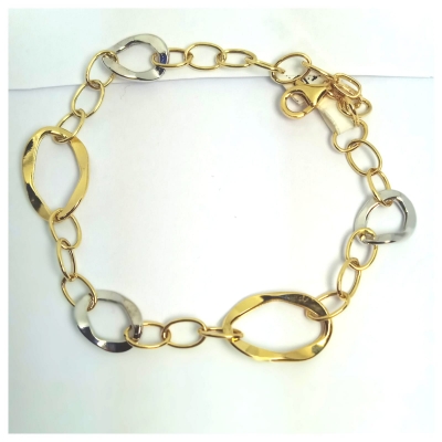 Pulseras de eslabones combinando los tamaños y el color del oro 18k. Cierre mosquetón. Presentamos la joya en caja y bolsa de regalo