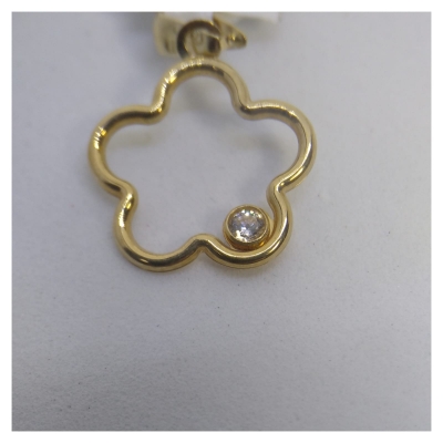 Colgante flor oro amarillo 18k con una circonita un uno de sus pétalos. Presentamos la joya en caja y bolsa de regalo.