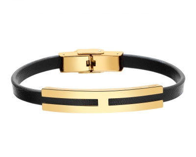 Pulserta cuero negro combinado con acero en chapado oro 18kl amarillo