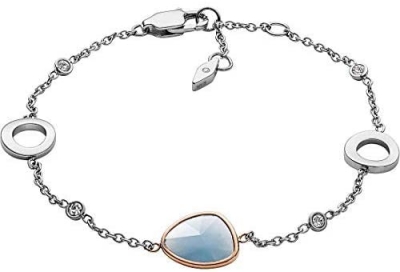 Pulsera fossil acero con tonos azules y pequeñas circonitas donde le dan un toque perfecto. El cierre es mosquetón. Un complemento perfecto